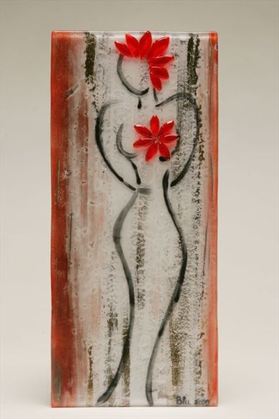 I suoi piatti ornamentali sapientemente artistici dai controluce incantatori sono l' inizio del suo percorso che la porta a forgiare la materia pasta-vetro colorato in situazioni di naturale equilibrio e ricercatezza fino a raggiungere la desiderata quarta dimensione che nel suo caso sfoggia una donna che simboleggia l' intersezione ignota della moderna femminilità che richiedendo numerosi punti di vista affinchè si affermi e dentenga quel tanto di femminile e comprensibile in natura con il particolare che il "murano" esalta (cuore e fiore).