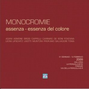 Caratteristica discriminante per la scelta delle opere per “Monocromie, assenza-essenza del colore” è la presenza di un colore predominante, o anche di un solo colore. Con questa nuova esposizione l’intento della direzione artistica della Galleria La Pergola Arte è quello di evidenziare e porre in rilievo la forza creativa che l’artista riesce ad esprimere anche in situazioni minimali, e rendere il giusto tributo al colore, che a volte travolge, a volte sussurra, altre imprigiona l’animo poetico in evocazioni spirituali di antico retaggio, ma sempre decide la compiutezza dell’opera a prescindere dalla tecnica e dalla rappresentazione formale figurativa o astratta. La selezione dei quattordici artisti presentati in questo catalogo, artisti emergenti provenienti da tutta Italia, vuole suscitare una riflessione su un tema tuttora vivo nella creatività e nella sensibilità dell’artista di oggi, portando in qualche caso a scoprire delle vere e proprie novità nell’eterogeneo panorama artistico contemporaneo.