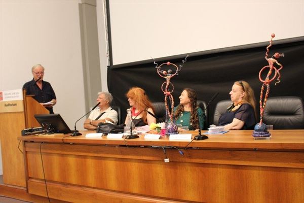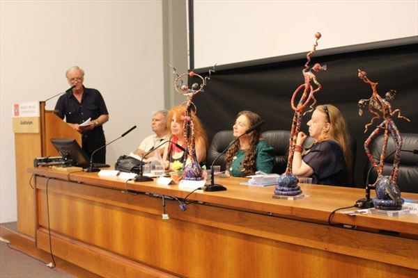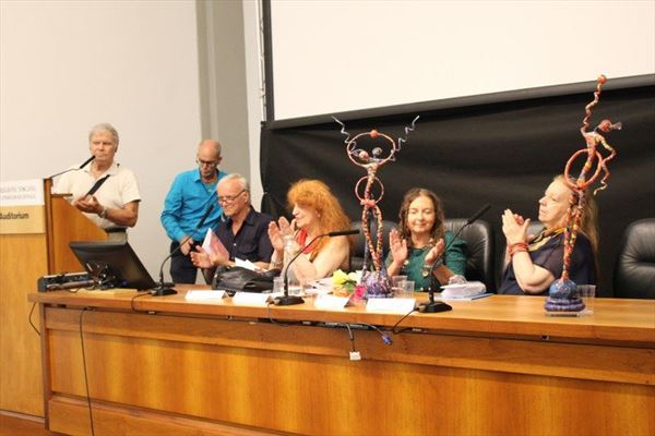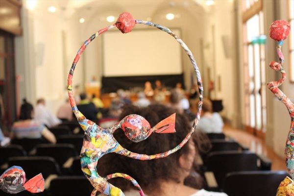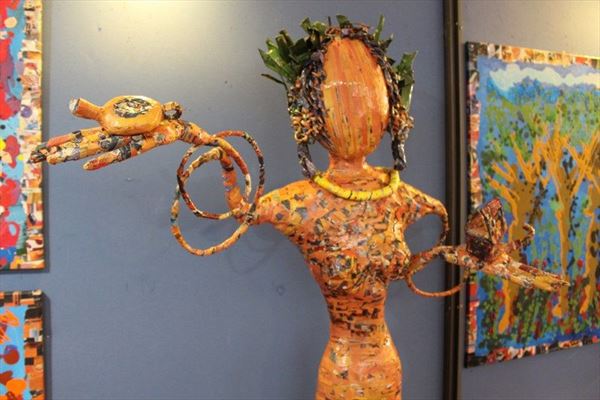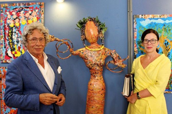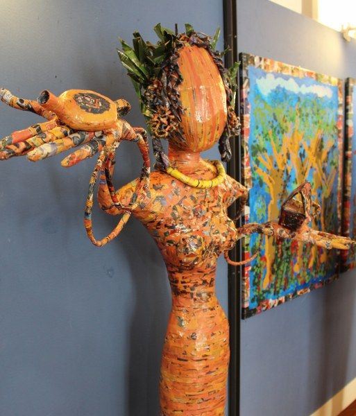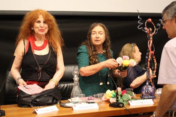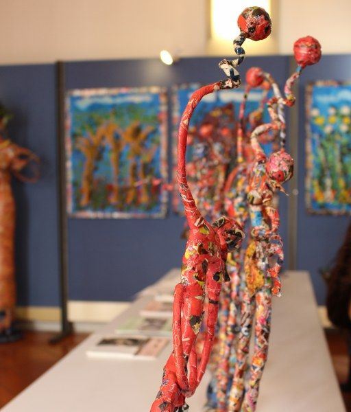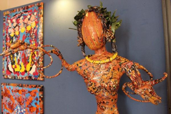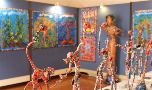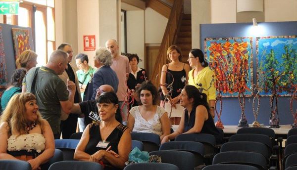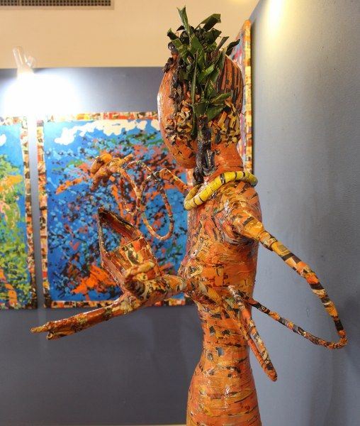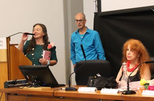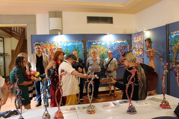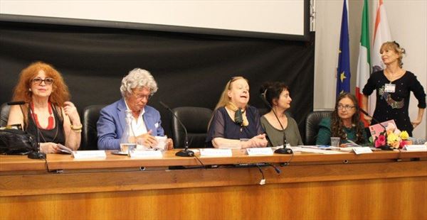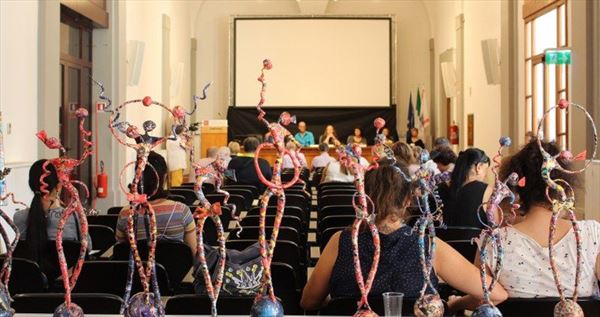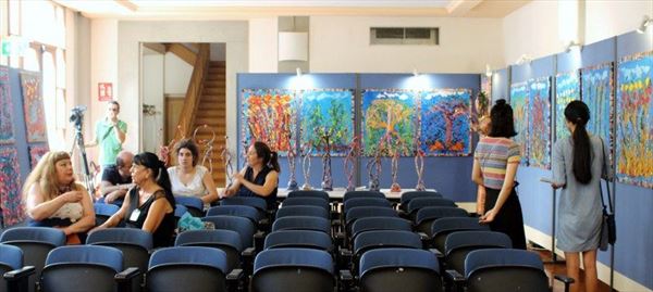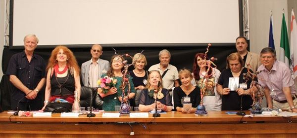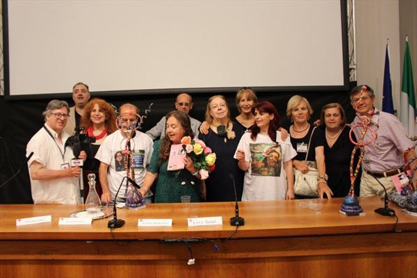 Inaugurata il 2 agosto 2017 a Palazzo del Pegaso, nell’auditorium Spadolini con il patrocinio della Regione Toscana, l’originale mostra “L’Etrusca tra i colori della Tuscia” propone quattordici sculture in cartapesta e sedici dipinti con tecnica mista di Lilly Brogi, poliedrica artista appartenente al miglior panorama figurativo italiano dei nostri giorni. Imponente, con i suoi centottantacinque centimetri di altezza, spicca per fulgida grazia la policroma Etrusca. Chiaro esempio di maestria scultorea di matrice popolare, è costituita da materiali poveri quali il ferro, il legno, la colla e la carta. La linea curva, arabescata, di derivazione floreale è presente nelle braccia dell’intrigante e misteriosa donna che, indomita, ha attraversato il tempo e lo spazio per giungere fino a noi. Testimonia il legame indissolubile con la civiltà etrusca distintasi, tra l’altro, per il ruolo preminente attribuito alla donna nella società dell’epoca e l’immediatezza espressionistica presente nelle arti figurative. Da un punto di vista scultoreo, evidenzia altresì l’attualità della tradizione avanguardistica del primo Novecento che predilige la linea sinuosa e armonica, presente in natura, da coniugarsi con l’abilità della costruzione plastica. Lo Stile Floreale, che si ispira anche alla pittura lineare giapponese, tende a superare l’antinomia tra la nascente industria e l’arte al fine di abbellire la vita quotidiana. Le braccia dell’Etrusca ci recano l’incanto della bellezza che salva il mondo dalla barbarie e dal fango. Nella mano sinistra porge una piccola casa antica che auspica il processo evolutivo dell’architettura a misura non solo dello spazio fisico, ma anche della nostra dimensione interiore. Nella mano destra tiene una lampada ad olio che rappresenta la luce della conoscenza. L’Etrusca reca in sé un messaggio d’amore: si deve imparare dagli esempi della Storia per non ricadere negli stessi errori. Elemento sostanziale, che dona un senso di immanente, leggiadra maestosità alla statua di cartapesta, sono gli splendidi piedi prensili che si appoggiano sull’azzurro globo terracqueo. L’essenza della femminilità, intesa come valorizzazione dell’intelligenza della grande madre dispensatrice di pace e prosperità a tutta l’umanità, rappresenta parte della prodiga poetica artistica di Lilly Brogi, che mira all’elevazione spirituale. Nella parte inferiore del corpo, si aprono quindi infiniti scenari di valenza cosmica in cui l’Etrusca, che è Donna, indica la via della salvezza dalle umane sofferenze. Deliziose creature, in bilico tra Terra e Cielo, sono le sculture di piccole dimensioni. Se, con l’Etrusca, condividono la pregnanza materica dell’arte povera, se ne distaccano anch’esse levando le snelle braccia al cielo per giocare a palla con la luna o prendere le stelle. L’eleganza insita nelle linee curve si compenetra all’audacia delle diagonali e dei piani inclinati quando, in particolar modo, l’opera è composta da due figure che si uniscono in un abbraccio. Ideale e sincero, fuga ombre e solitudine per l’eternità. L’afflato mistico è insito nell’arte di Lilly Brogi che persevera a mostrare fede e fiducia in piani astrali intuibili e prossimi solo a coloro che umilmente si avvicinano alla verità rivelata tramite la consapevolezza di poter incontrare, strada facendo, un angelo nel clochard dell’angolo o nell’anziano solo o nel bambino portatore di handicap.